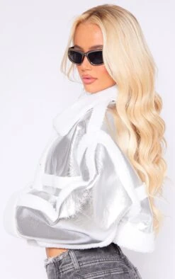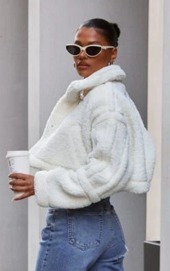 Prettylittlething Cream Buckle Collar Borg Aviator Jacket Cream