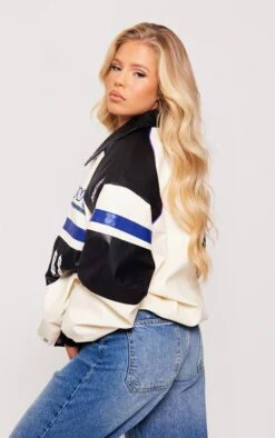 Prettylittlething Cream Faux Leather Oversized Contrast Motorcross Bomber Jacket Cream