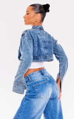 Prettylittlething Light Blue Wash Pocket Front Denim Jacket High Side Bodysuit Light Blue Wash