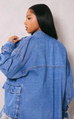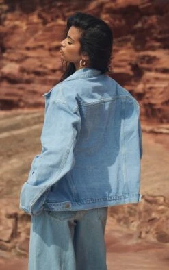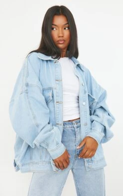 Prettylittlething Light Blue Wash Oversized Drop Shoulder Denim Jacket Light Blue Wash