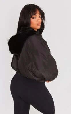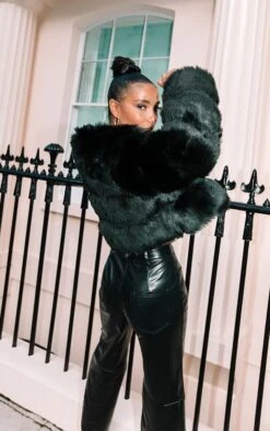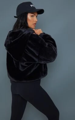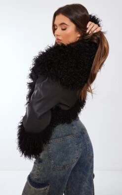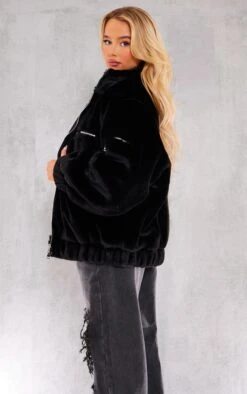 Prettylittlething Black Faux Fur Plush Military Maxi Coat Black