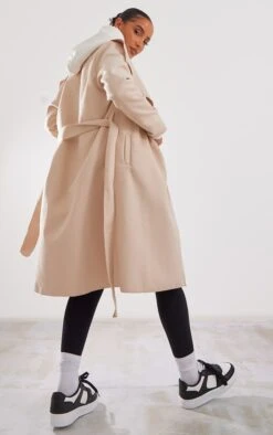 Prettylittlething Stone Woven Hooded Oversized Trench Coat Stone