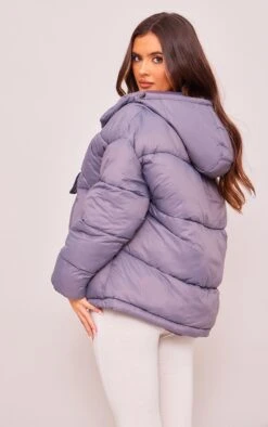 Prettylittlething Grey Distressed Faux Leather Double Breasted Belted Trench Coat Grey