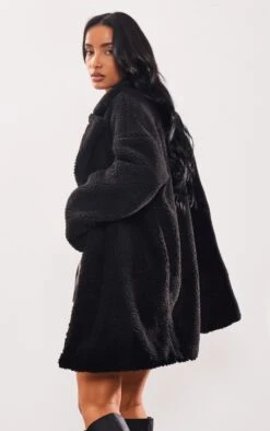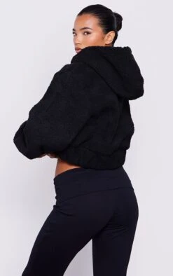 Prettylittlething Black Borg Hooded Zip Through Jacket Black