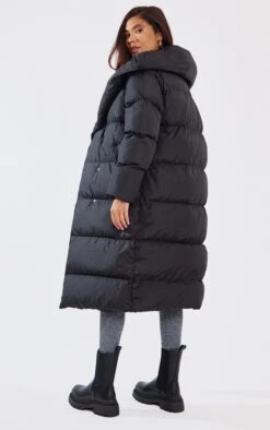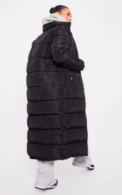 Prettylittlething Black Chevron Quilted Maxi Puffer Coat Black