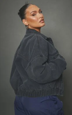 Prettylittlething Washed Black Oversized Elasticated Hem Quilted Denim Jacket Washed Black