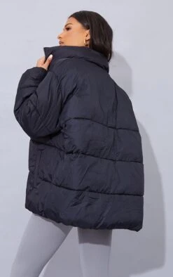 Prettylittlething Black Super Cropped Peach Skin Puffer Black