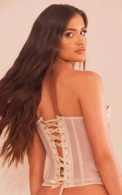 Prettylittlething Nude Textured Mesh Ribbon Back Corset Nude