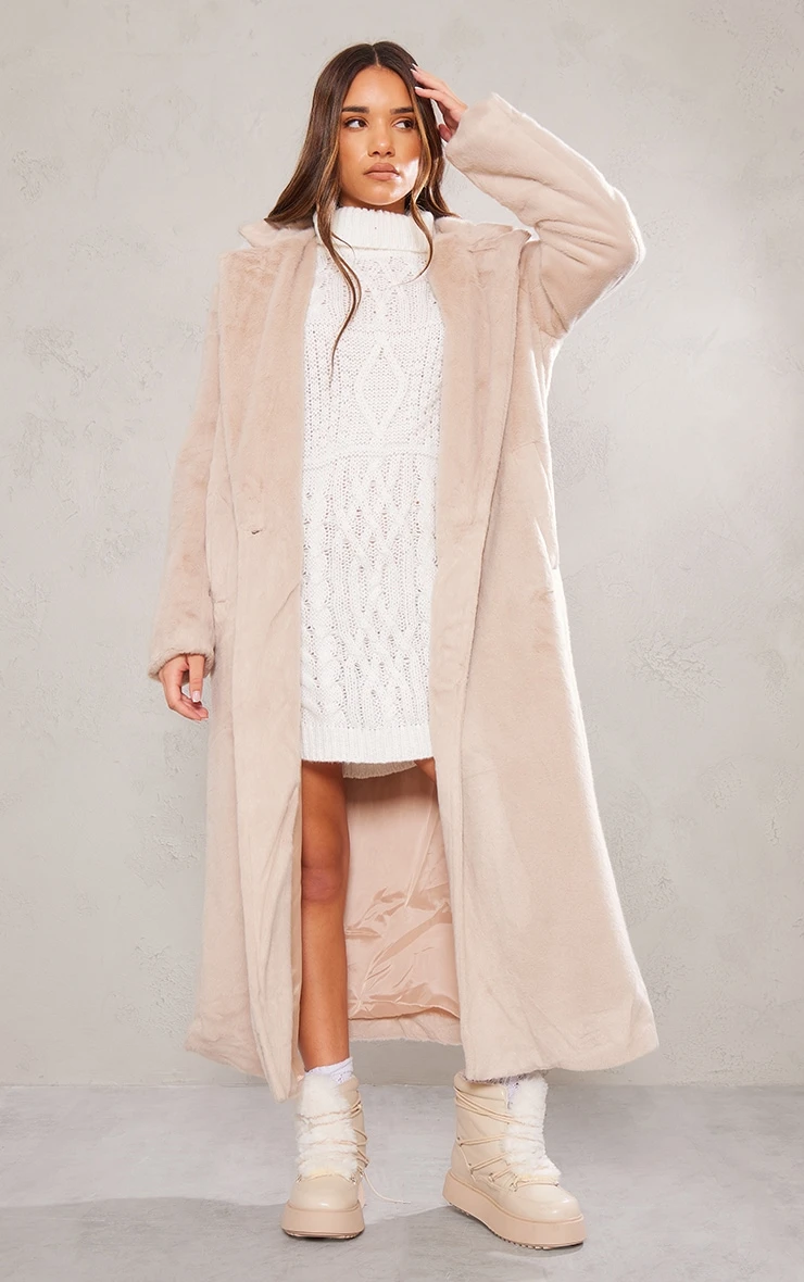 Be the first to review “Prettylittlething Beige Premium Soft Faux Fur Tailored Maxi Coat Beige” Cancel reply