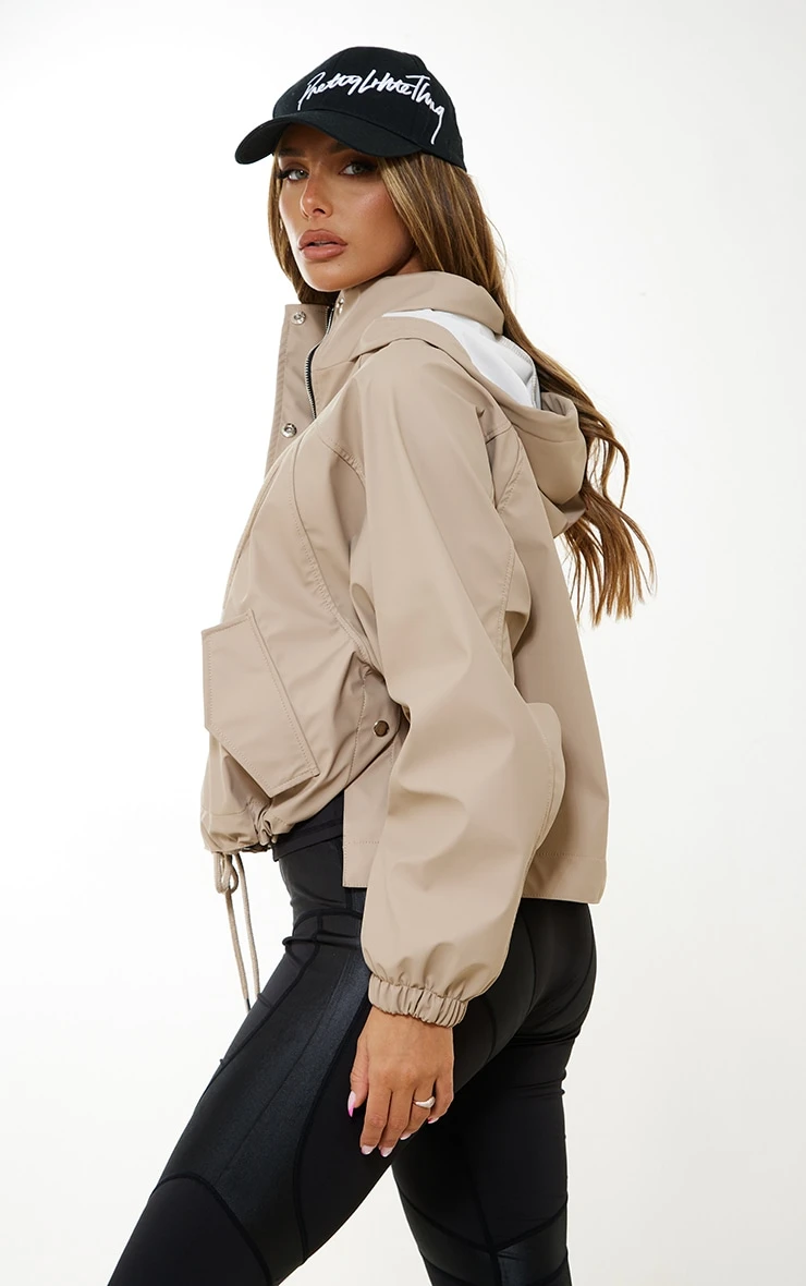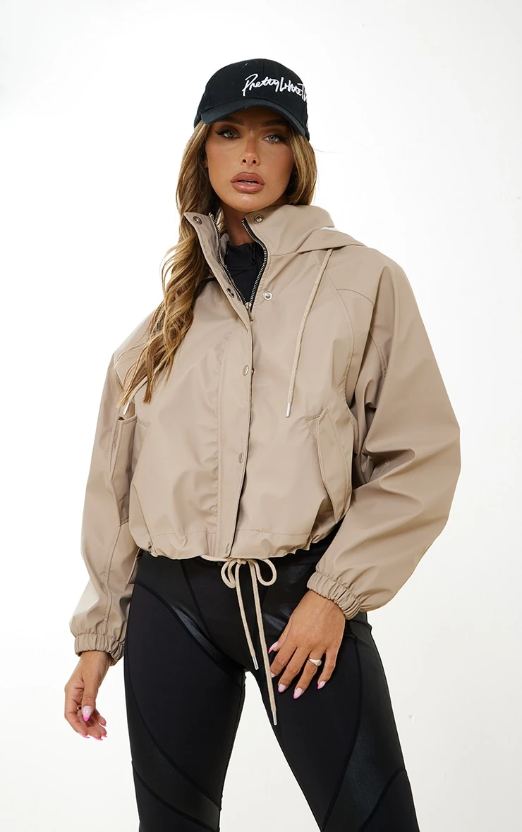 Be the first to review “Prettylittlething Beige Rubberised Hooded Drawstring Jacket Beige” Cancel reply