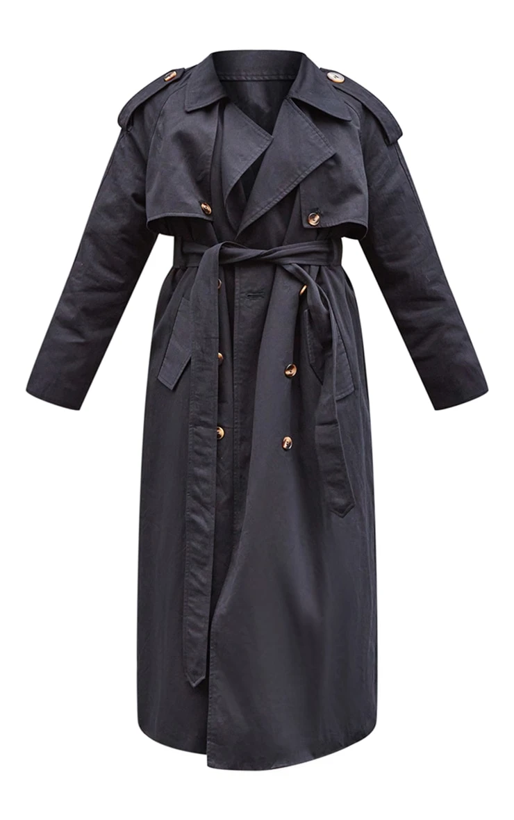 Be the first to review “Prettylittlething Black Belted Double Breasted Trench Coat Black” Cancel reply