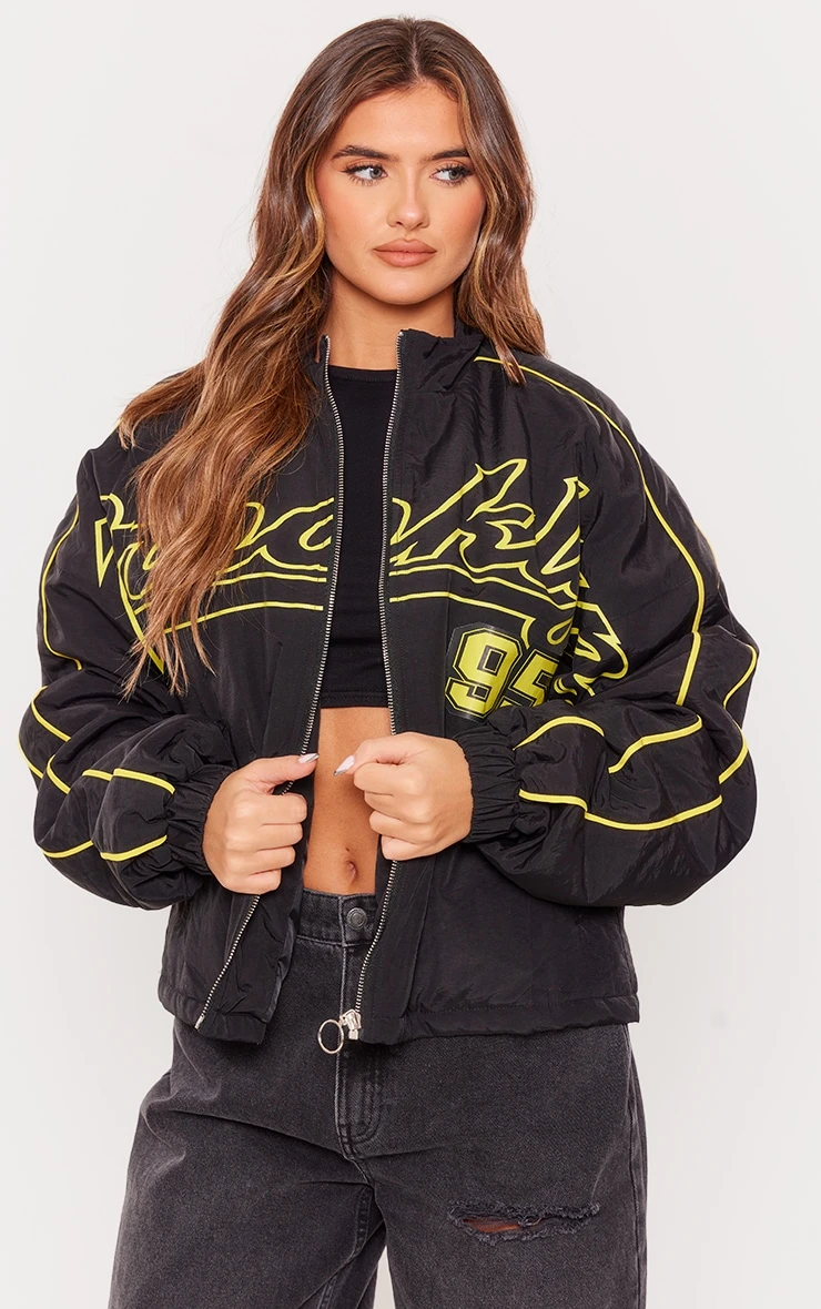 Be the first to review “Prettylittlething Black Contrast Oversized Graphic Zip Up Racer Bomber Black” Cancel reply