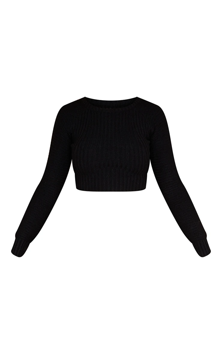 This simple black knit sweater is a staple for the new season. Featuring a black rib knit material with a cropped design, wear this sweater with cargo Pants and boots for a cool everyday attire.