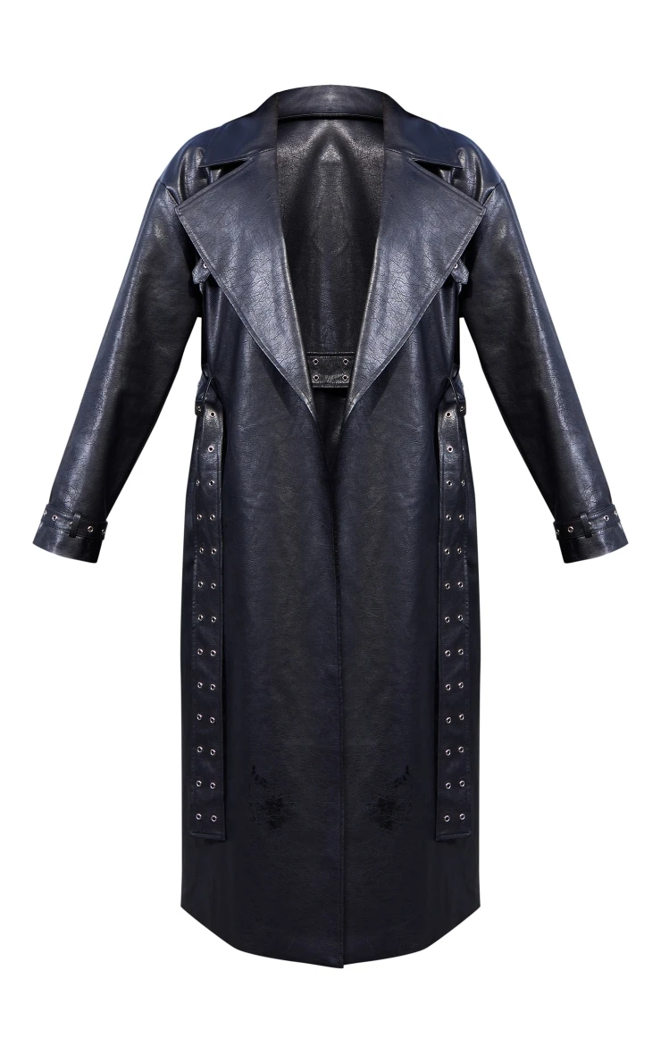 Be the first to review “Prettylittlething Black Distressed Faux Leather Eyelet Belted Trench Coat Black” Cancel reply