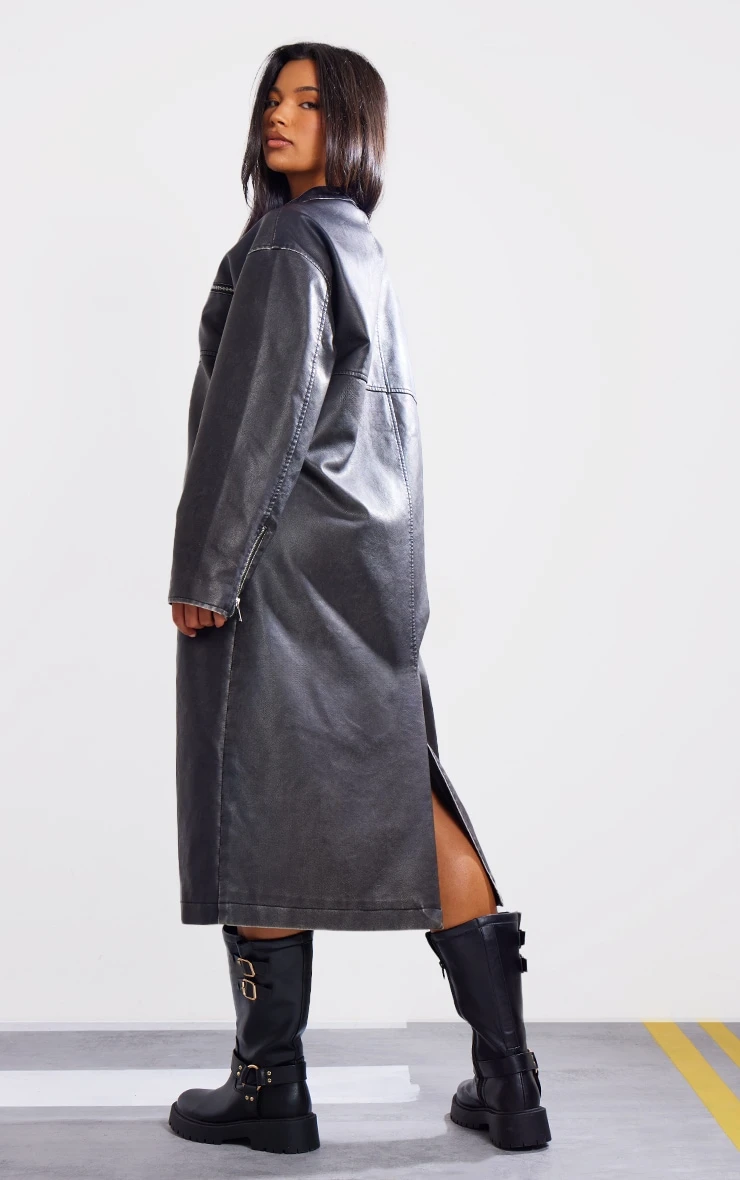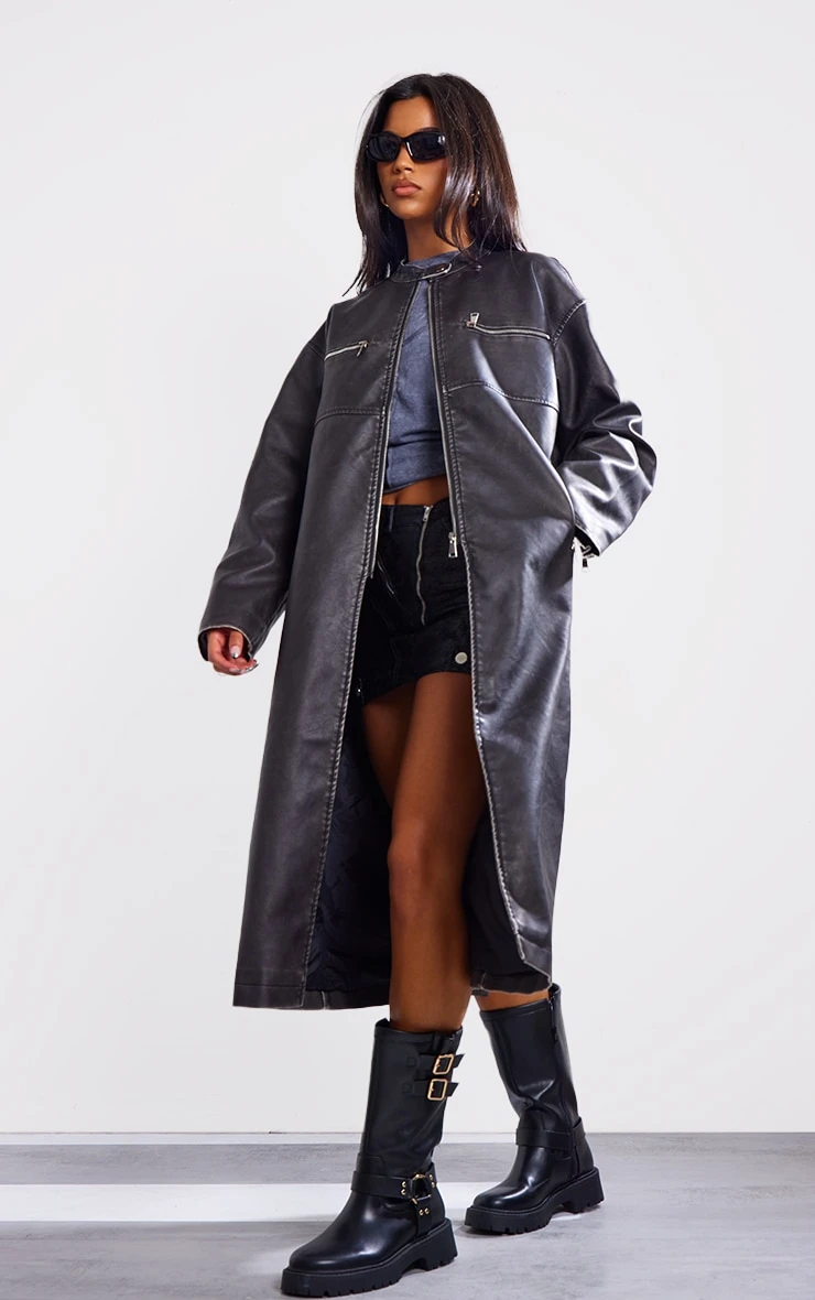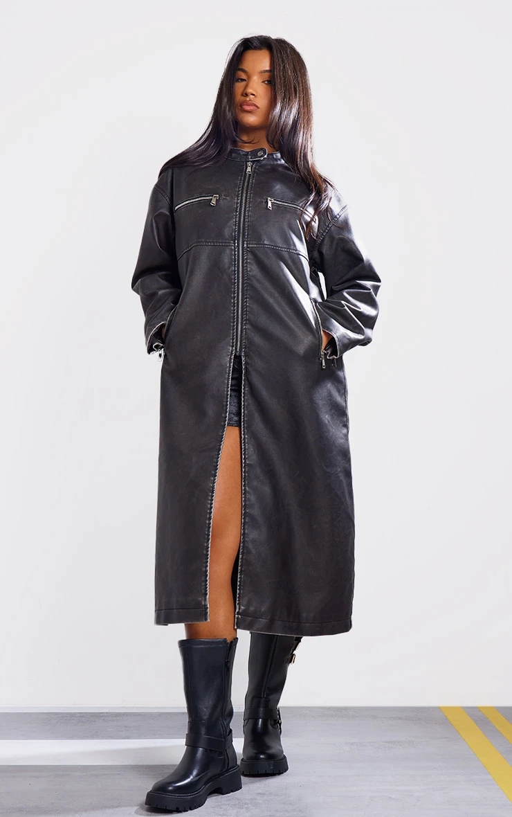 Be the first to review “Prettylittlething Black Distresses Pu Biker Trench Coat Black” Cancel reply