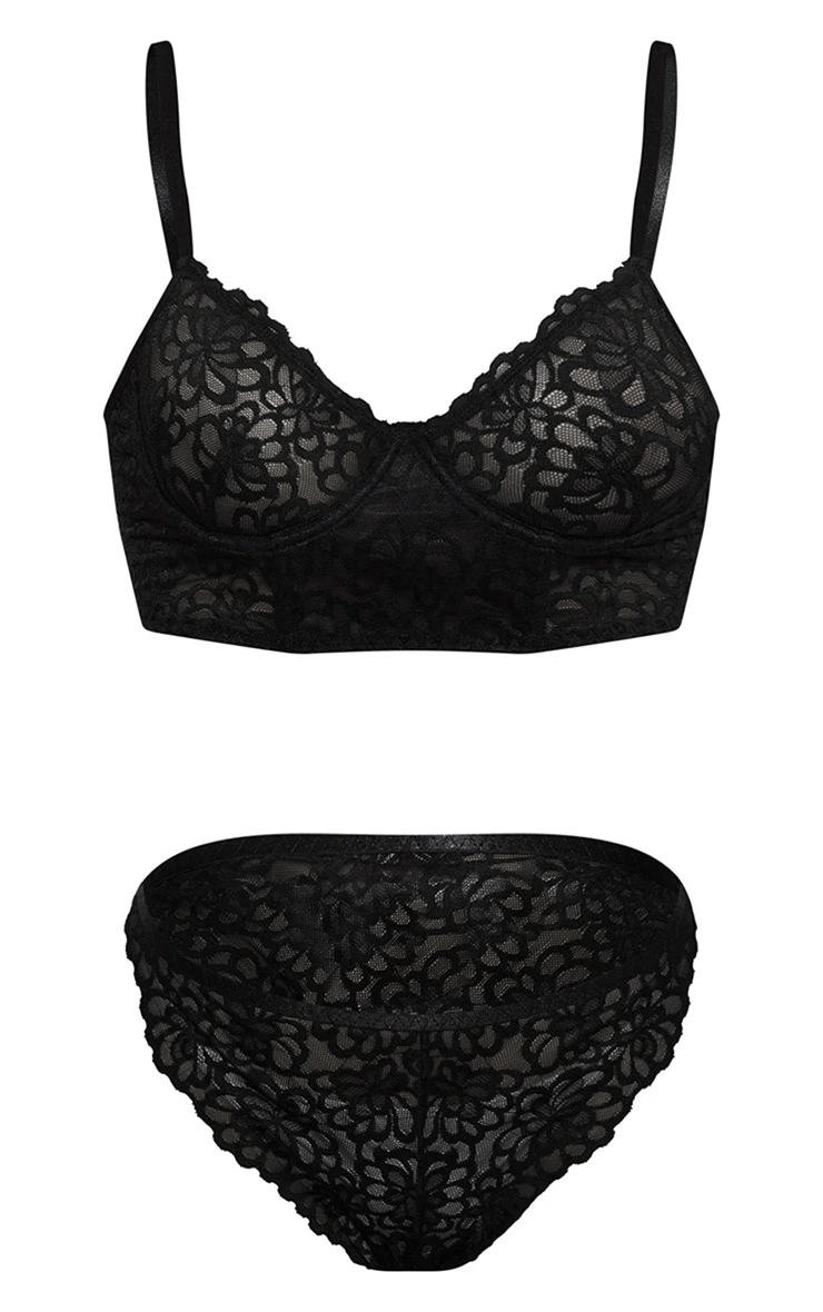 Be the first to review “Prettylittlething Black Floral Scalloped Edge Lace Longline Bra And Panties Set Black” Cancel reply