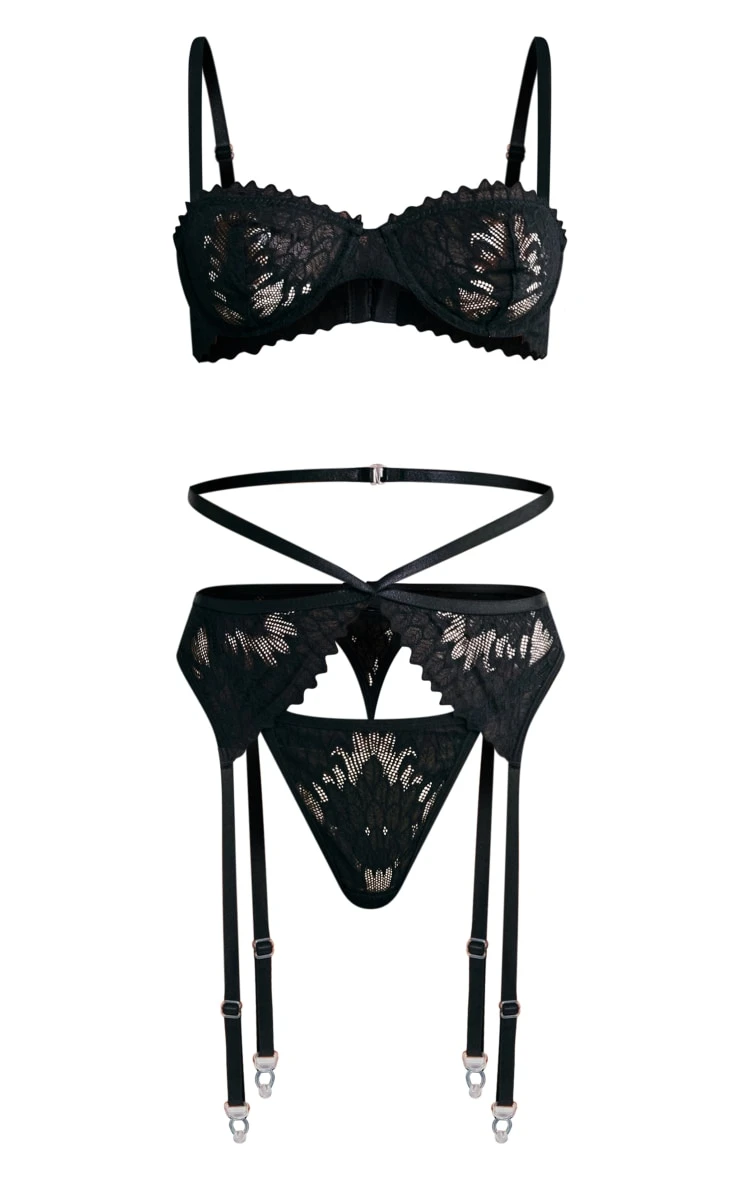 Be the first to review “Prettylittlething Black Lace Scalloped Edge Underwired 3 Piece Lingerie Set Black” Cancel reply