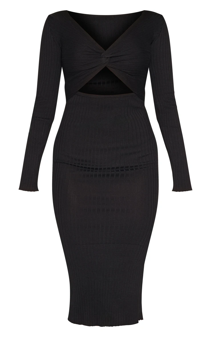Be the first to review “Prettylittlething Black Long Sleeve Knot Detail Midi Dress Black” Cancel reply
