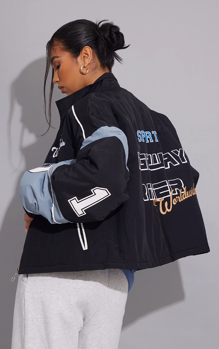 Be the first to review “Prettylittlething Black Oversized Graphic Zipped Racer Bomber Jacket Black” Cancel reply
