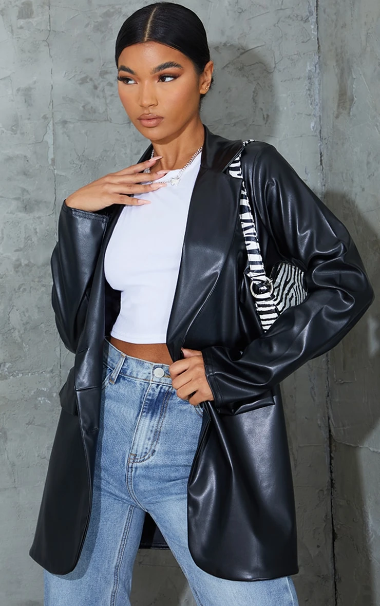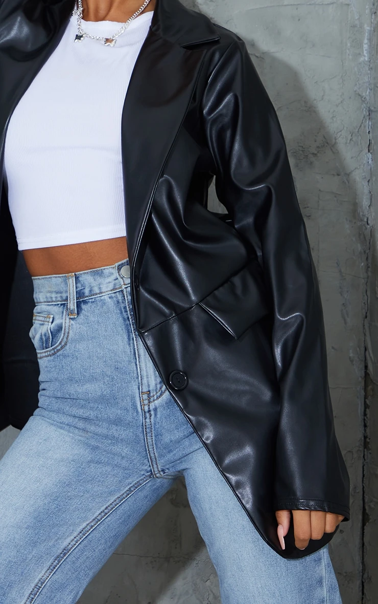 This blazer is sure to add an edge to your look. Featuring a black PU fabric with a pocket look and double button detail, team this with jeans and boots for a shopping date with the dolls.