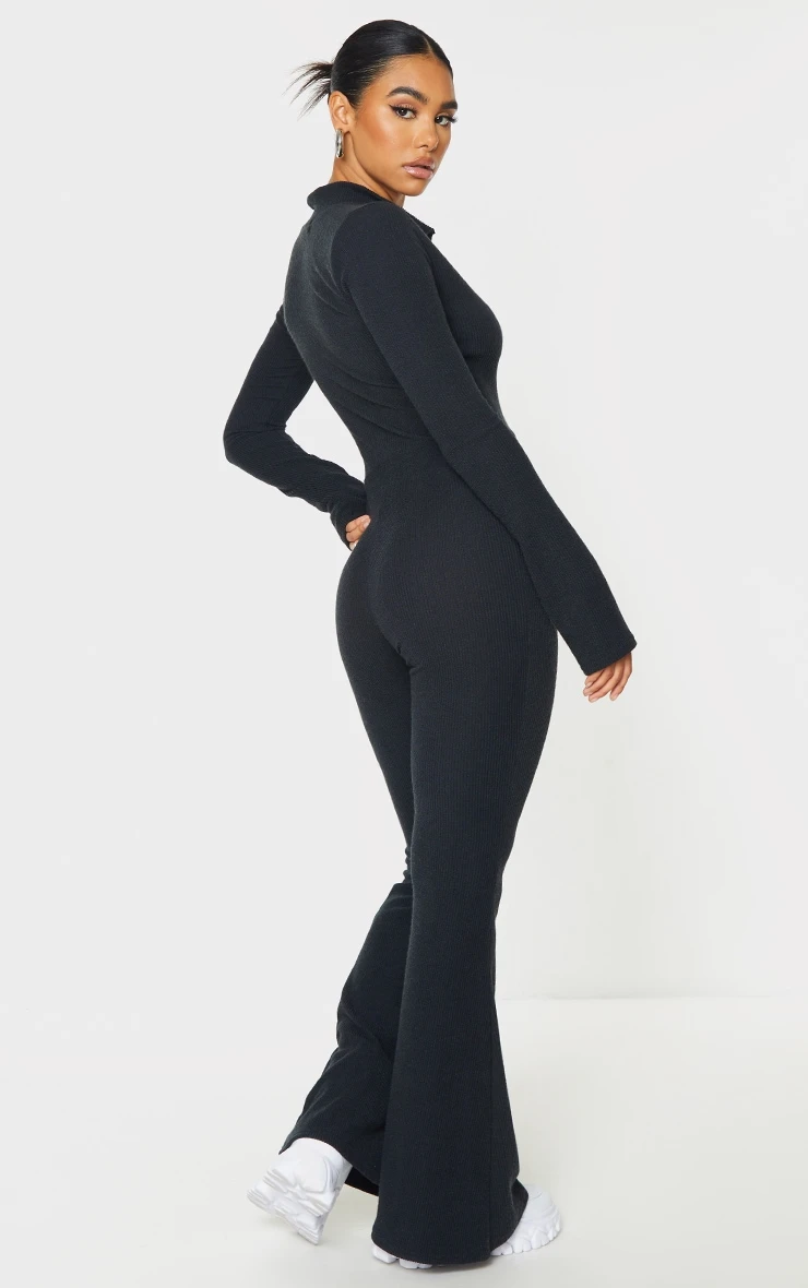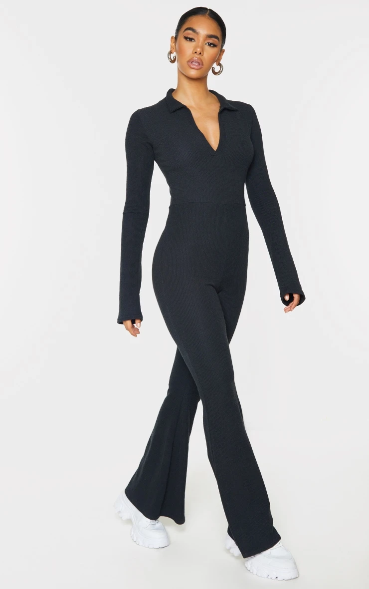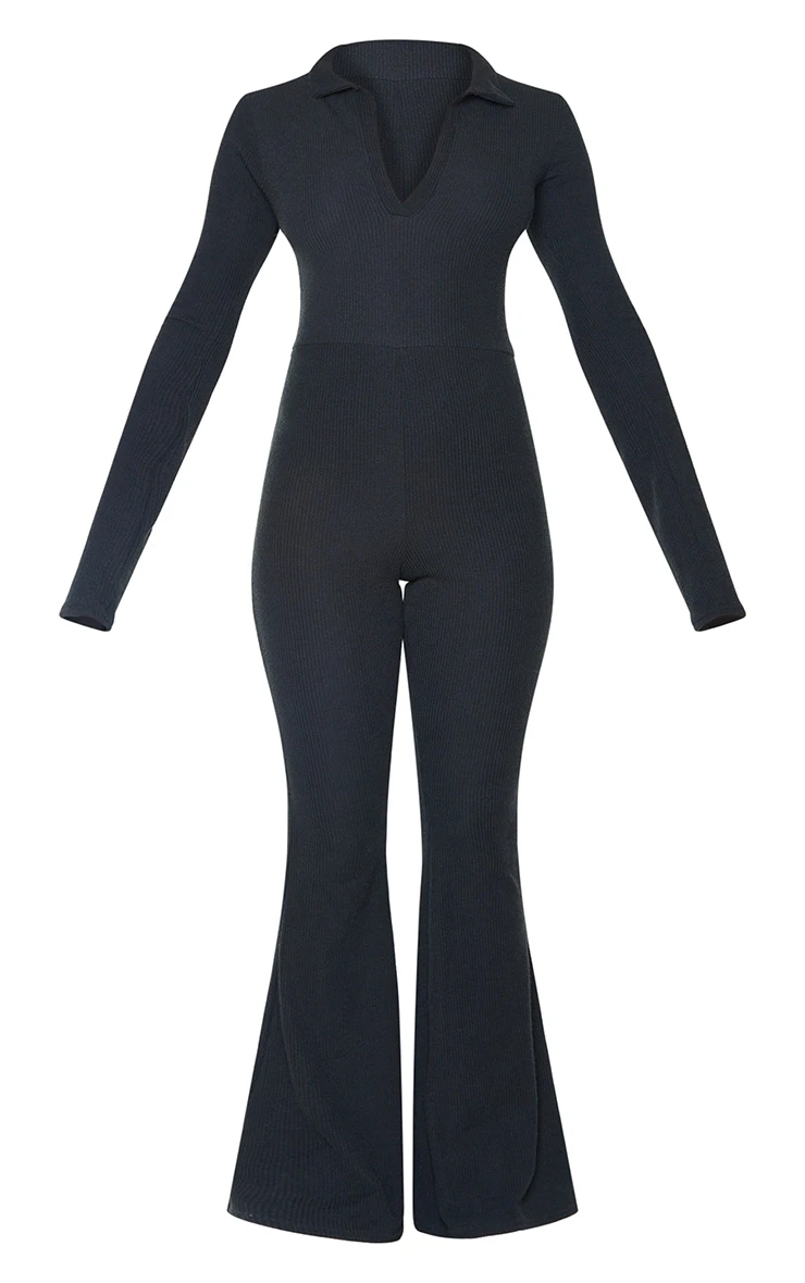 Be the first to review “Prettylittlething Black Rib Collar Detail Flare Leg Jumpsuit Black” Cancel reply
