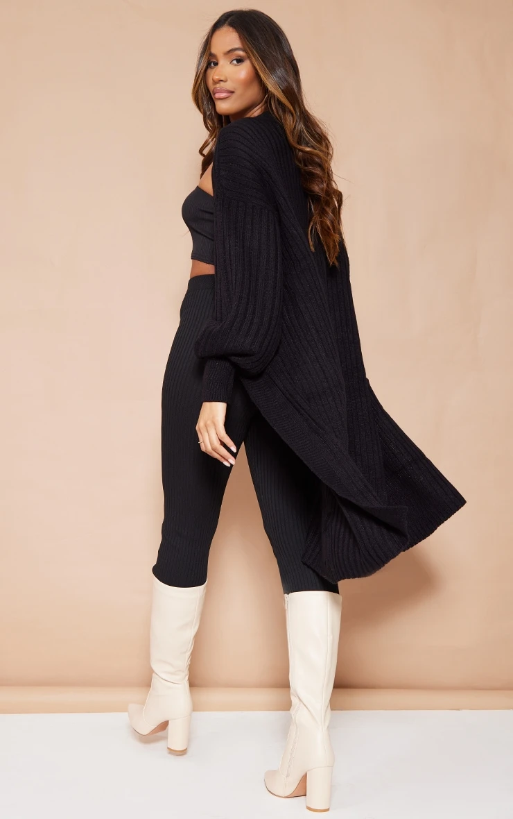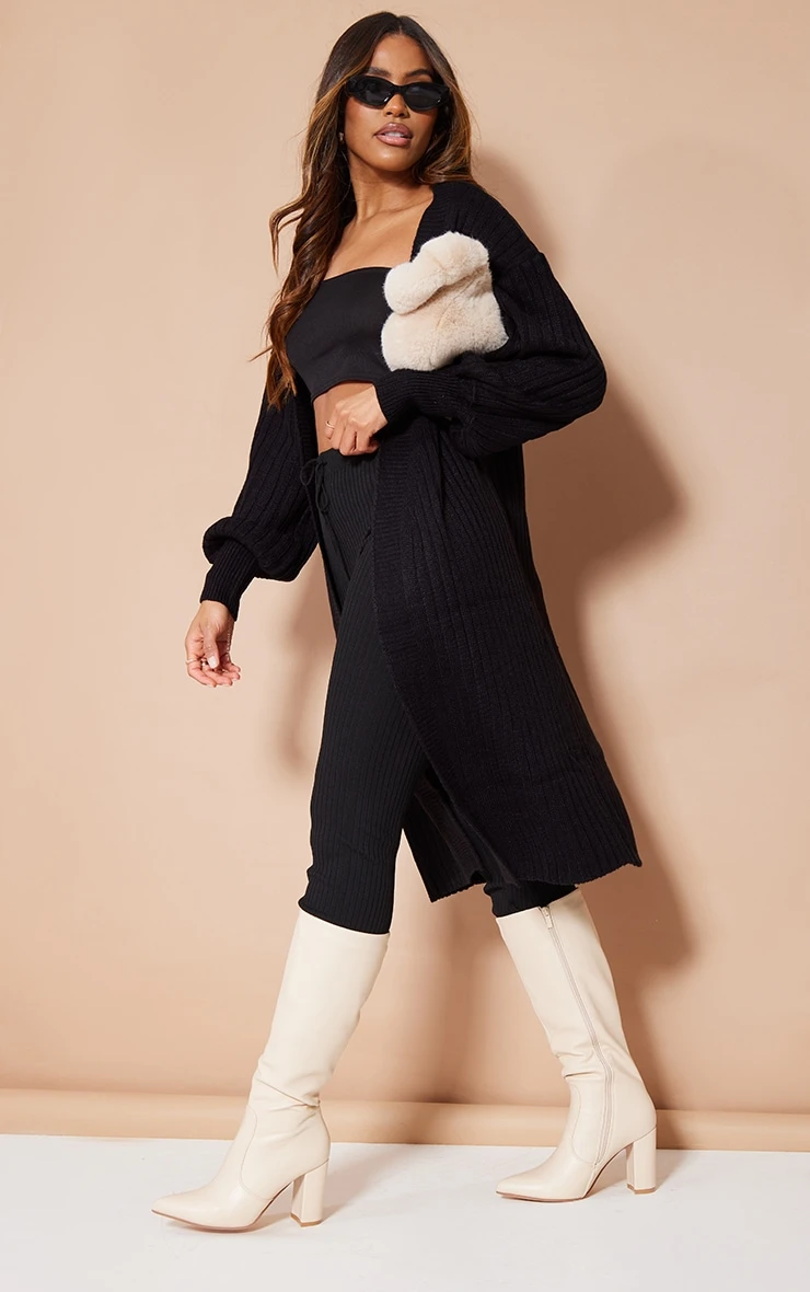 Layer up in style this A/W season with this cardigan. Featuring a black ribbed knitted material in a midi length, we are obsessed. Team this with your fave off-duty outfit to complete the look.