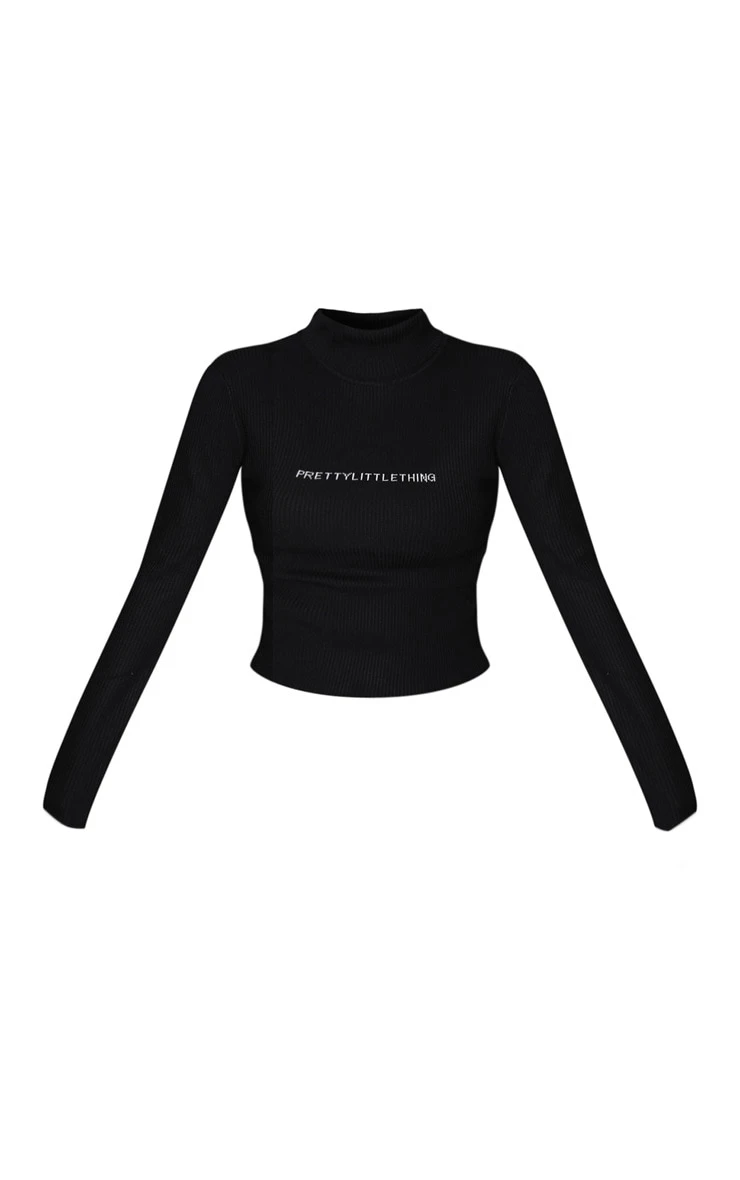 Update your everyday wardrobe with this new season essential. Featuring a black ribbed material with long sleeves, a high neckline and PrettyLittleThing graphic, team it with a black leather mini skirt for a look we’re loving.
