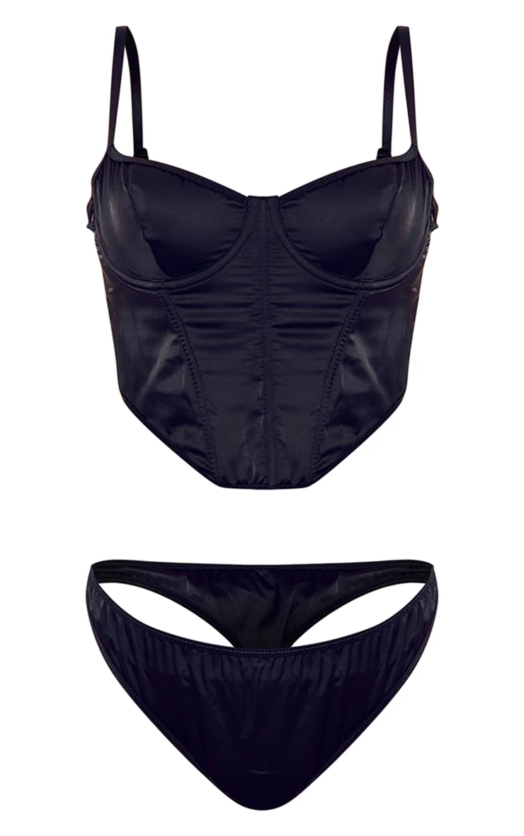 Be the first to review “Prettylittlething Black Satin Underwired Corset Set Black” Cancel reply