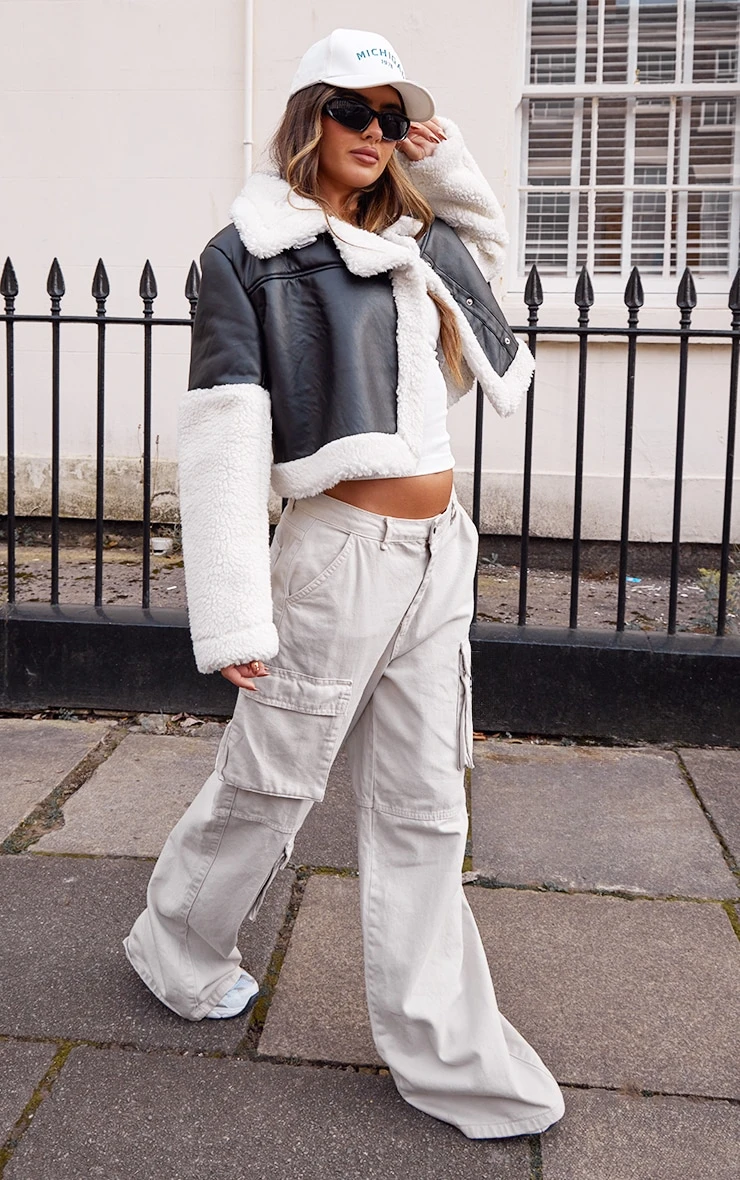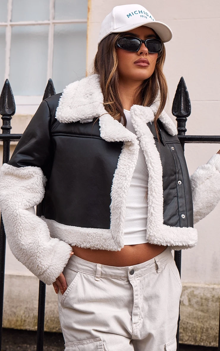 Be the first to review “Prettylittlething Black Statement Borg Trim Faux Leather Aviator Jacket Black” Cancel reply