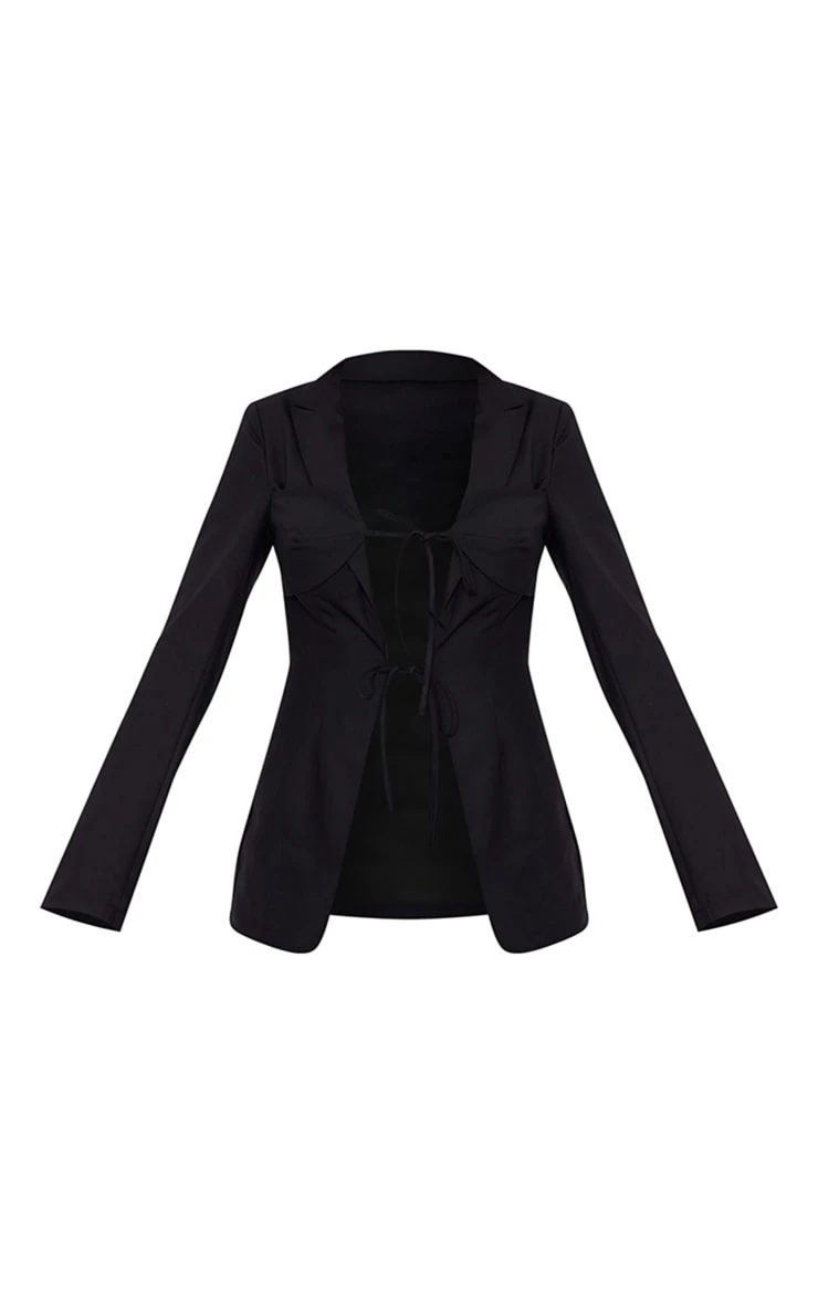 Be the first to review “Prettylittlething Black Tailored Woven Tie Front Longline Blazer Black” Cancel reply