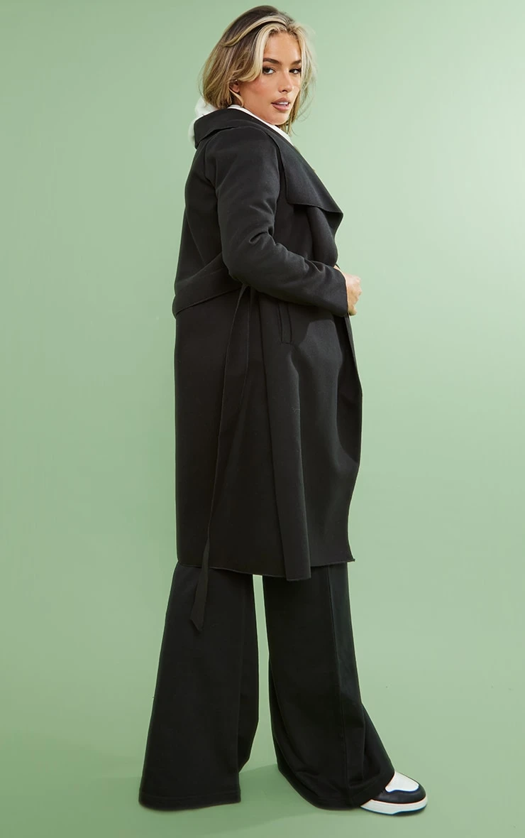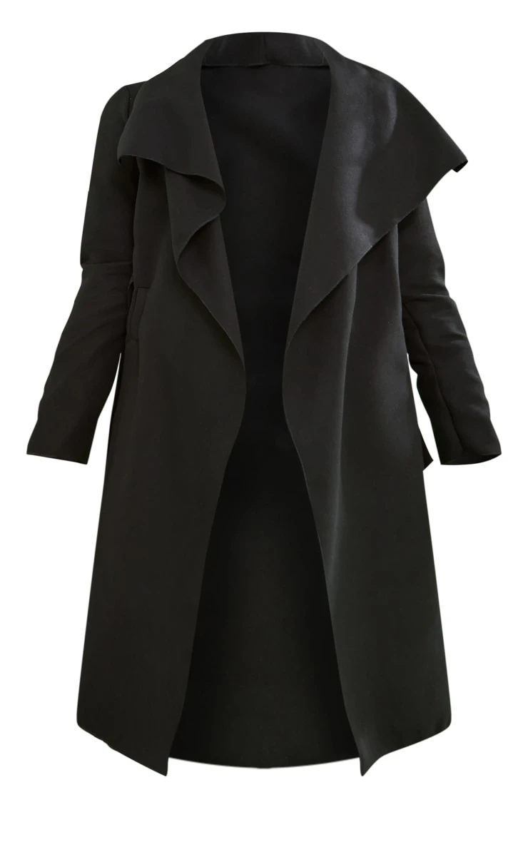 Be the first to review “Prettylittlething Black Veronica Waterfall Tie Waist Coat Black” Cancel reply