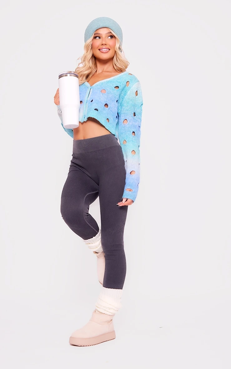 Take your look to the next level with this blue ombre open knit cardi. This cardi is brought to you in a blue ombre open knit material with a button-up front and a cropped length, what’s not to love? This cardi is here to take your off-duty styling to a whole new dimension. Pair with black leggings, box-fresh kicks and accessories for a vibe like no other.