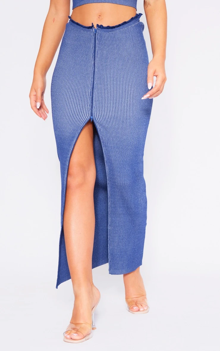 Be the first to review “Prettylittlething Blue Two Tone Knit Double Zip Maxi Skirt Blue” Cancel reply
