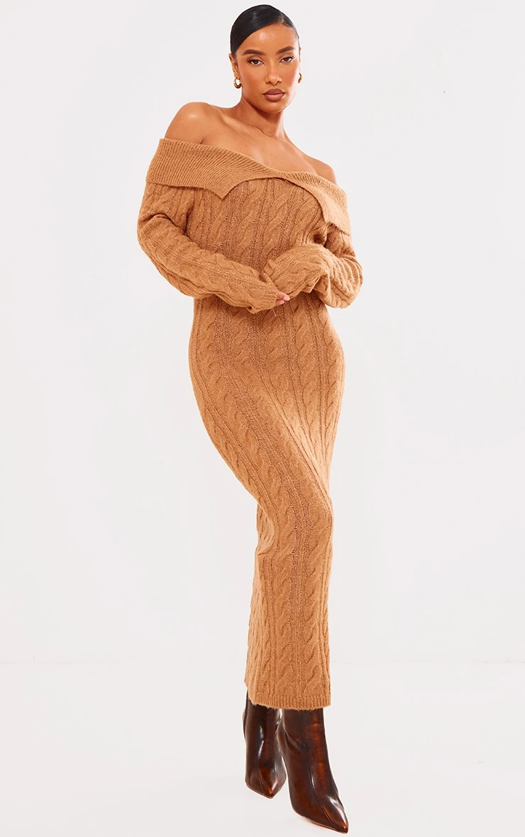 Be the first to review “Prettylittlething Brown Cable Fold Over Maxi Knit Dress Brown” Cancel reply