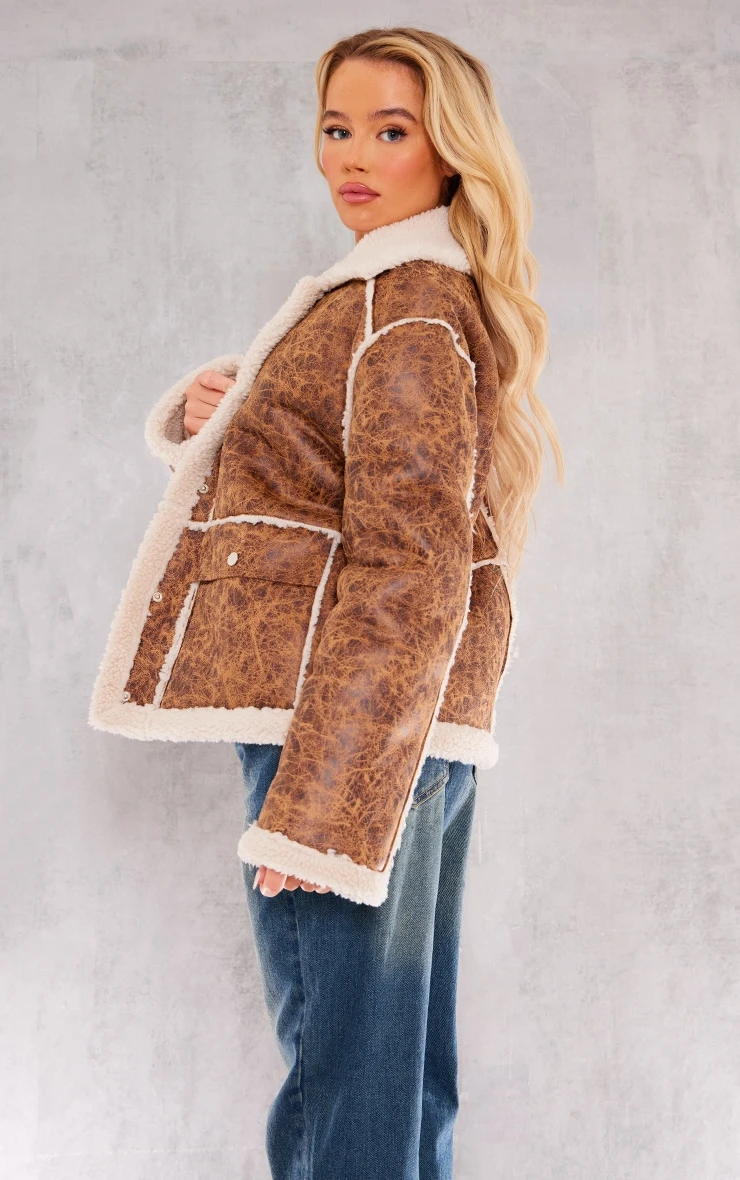 Be the first to review “Prettylittlething Brown Distressed Pu Borg Detail Collared Jacket Brown” Cancel reply