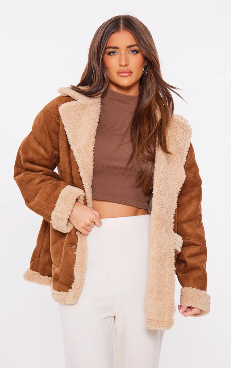 Be the first to review “Prettylittlething Brown Faux Suede Contrast Borg Oversized Jacket Brown” Cancel reply