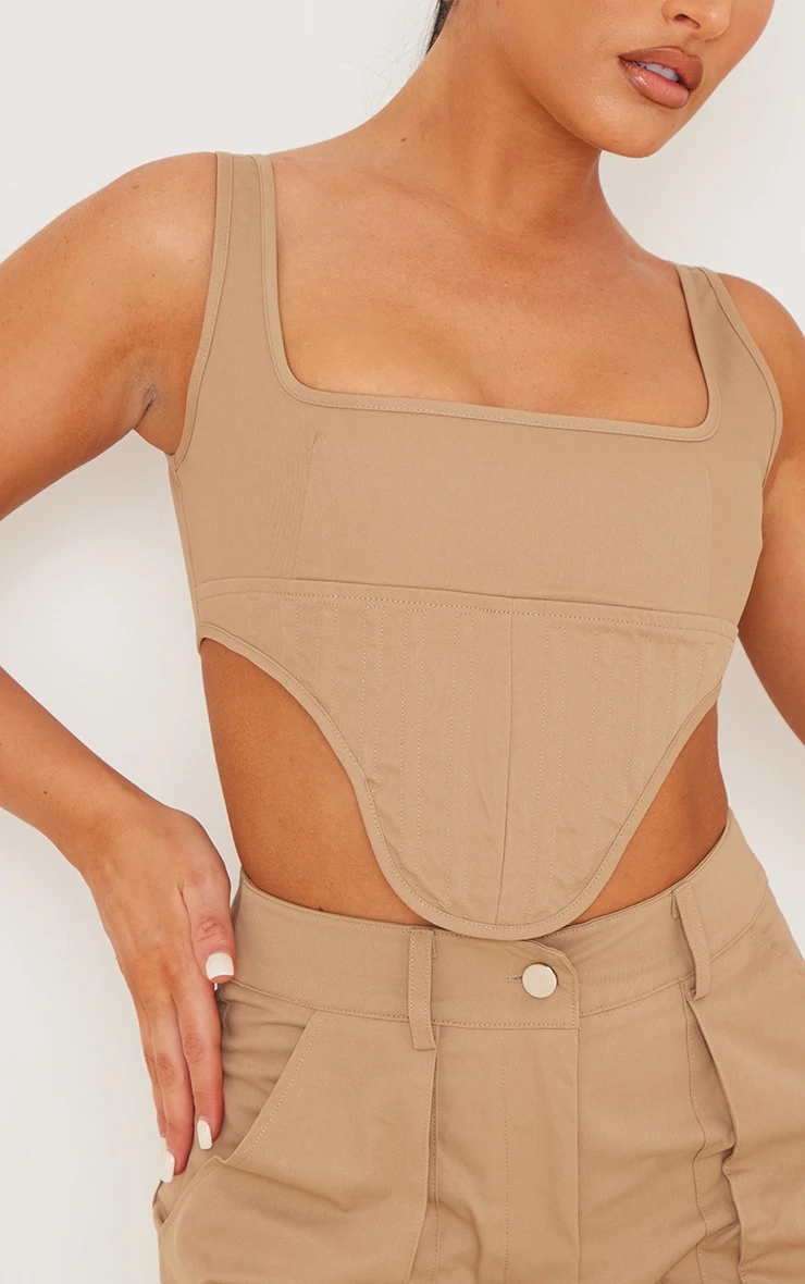 Switch up your style game with this corset doll. Featuring a brown twill material with a dip hem design, a structured fit and a cargo style. We are loving this teamed with the matching bottoms and heels for a look that will get you noticed.