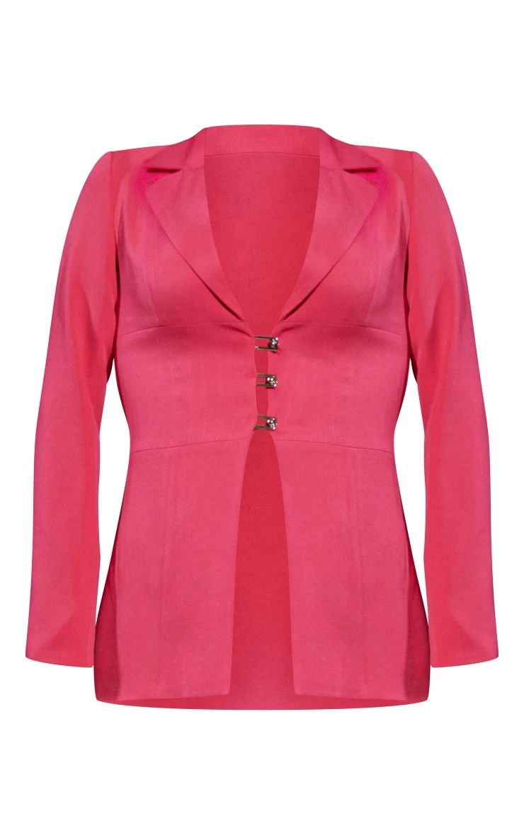 Bring all the fierce vibes to your weekend wardrobe with this blazer. Featuring a bubblegum pink material with long sleeves, front fastenings, a lace-up back design. Just add matching bottoms and feather detail heels for a show-stopping finish.