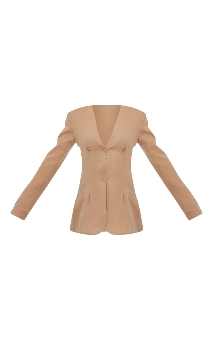 Be the first to review “Prettylittlething Camel Woven Open Back Button Detail Cinched Blazer Camel” Cancel reply