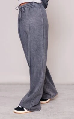 Prettylittlething Charcoal Washed Seam Detail Straight Leg Sweatpants Charcoal
