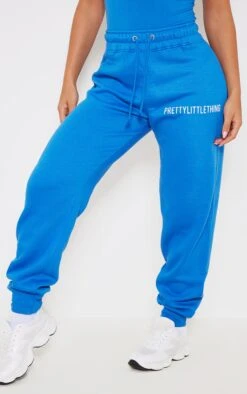 PRETTYLITTLETHING Blue Logo High Waisted Cuffed Sweatpants Blue