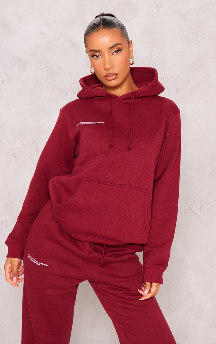 Take on those chilled days in style with this PrettyLittleThing cherry red logo est 2012 oversized hoodie. Brought to you in a cherry red material that is sure to have you nailing major trends. Its ‘Est 2012’ logo and oversized fit are all you need to feel effortlessly chilled. Team with the matching bottoms and your fave sneakers to elevate the look even further.