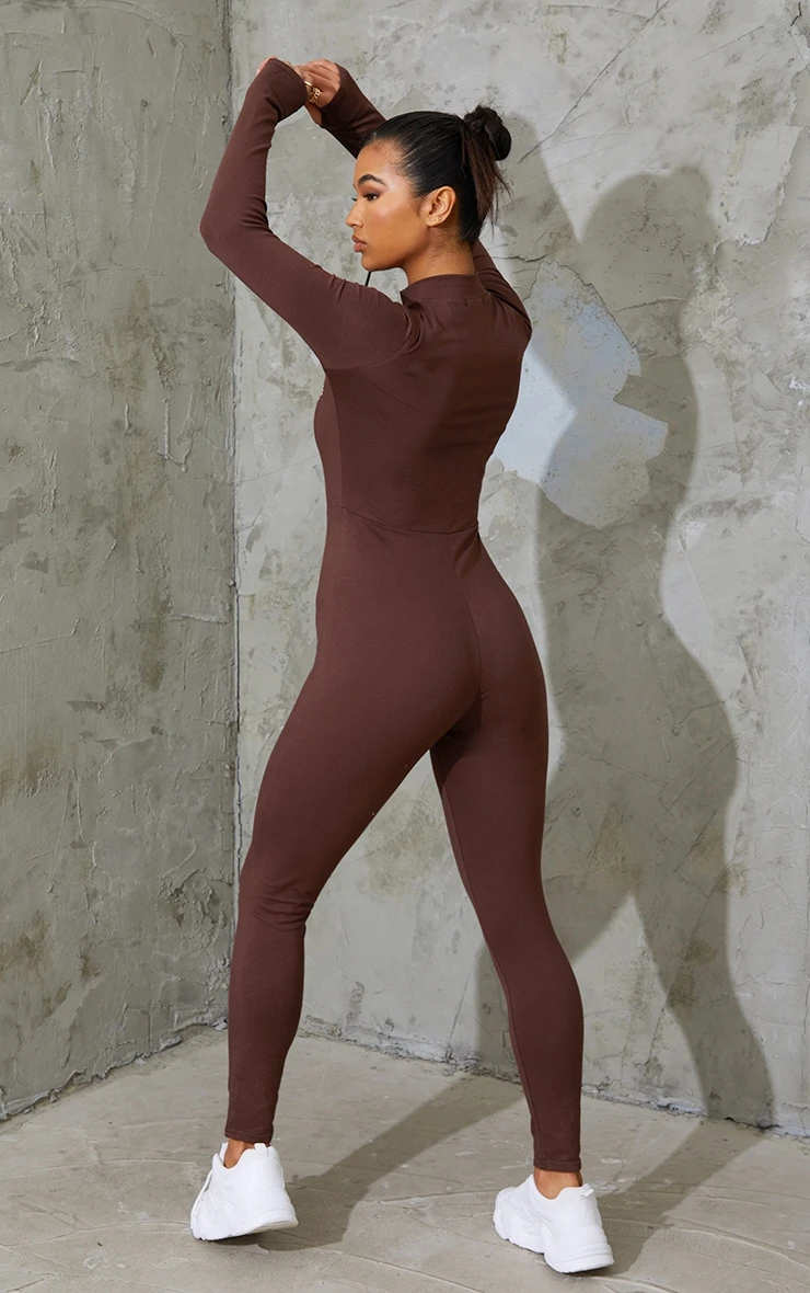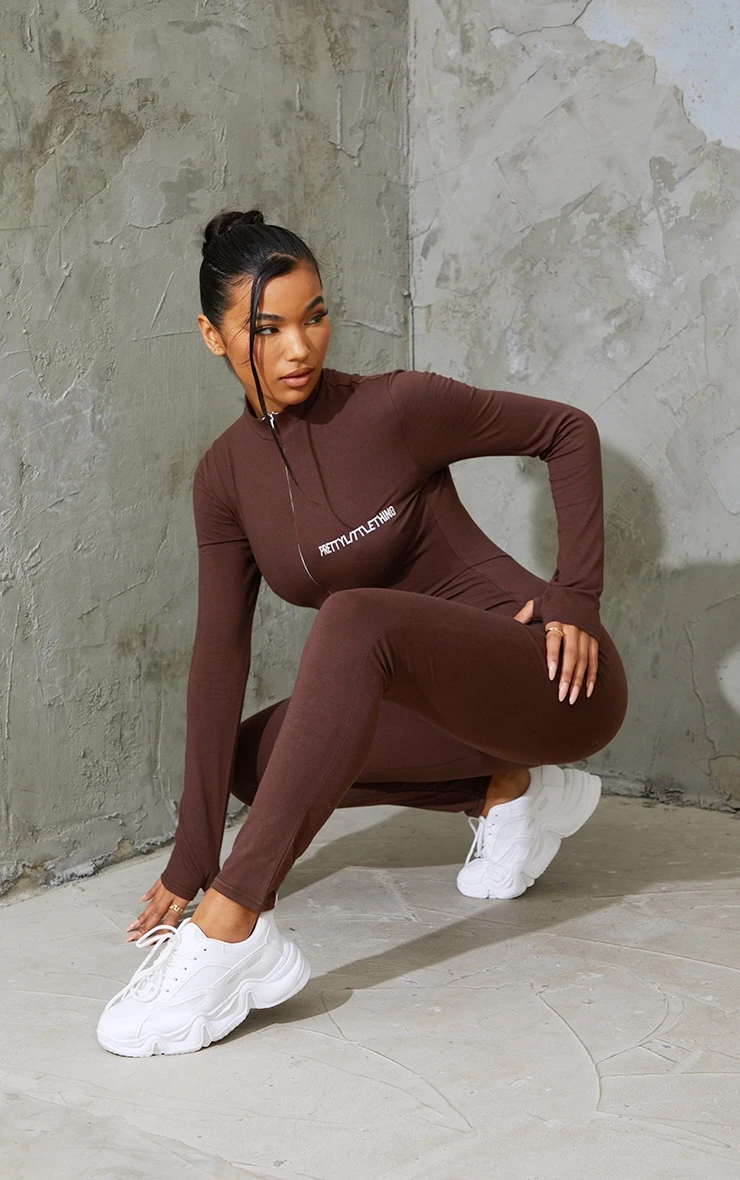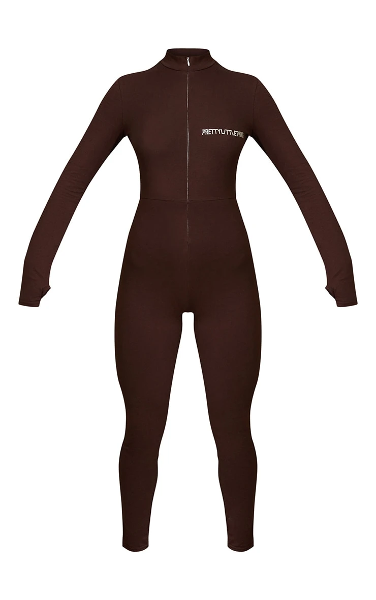 Hit refresh on your new season wardrobe with this must-have zip up jumpsuit, what’s not to love? Featuring a chocolate material with an embroidered ‘PrettyLittleThing’ graphic, a zip front design and a figure-worshipping fit, how could you say no doll? This brown jumpsuit is a must-have for effortless day to night styling. Team this brown catsuit with simple accessories and fresh kicks for the ultimate off-duty combo.