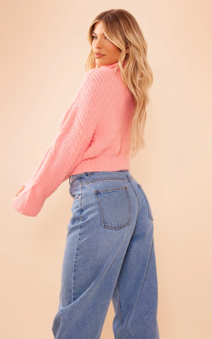 Give your everyday look an edge with this coral soft cable knit roll neck crop sweater. Brought to you in a coral soft cable knit material with a roll neck design bringing you all the comfy vibes to your outfit of the day. Style this unreal crop sweater with some of your fave jeans and a scarf to make your look effortlessly cosy.