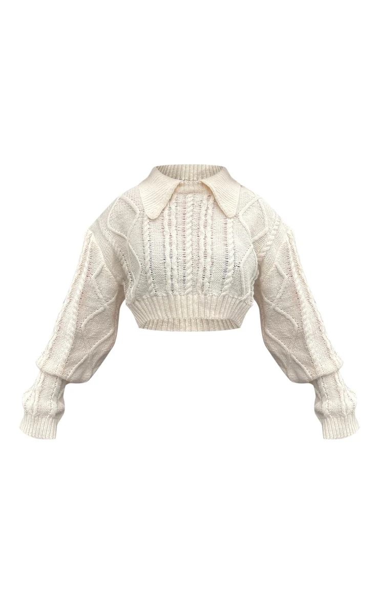 Be the first to review “Prettylittlething Cream Collar Detail Laddering & Cable Knit Sweater Cream” Cancel reply