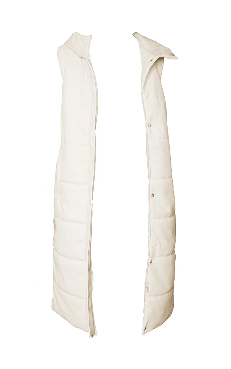 Layer up your new season look with this vest. Featuring a cream faux leather material with a hooded design and a midi length. Pair this with a matching two-piece set and kicks for a day out with the dolls.