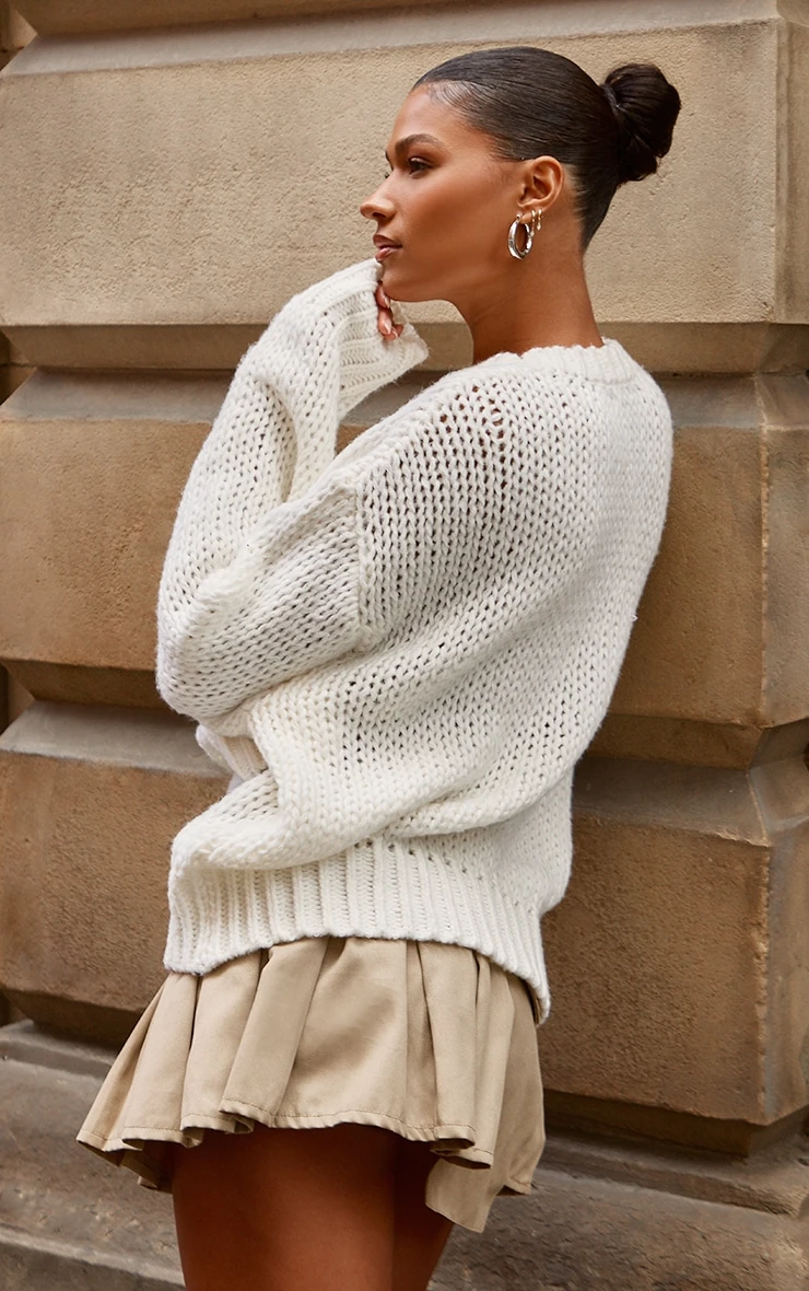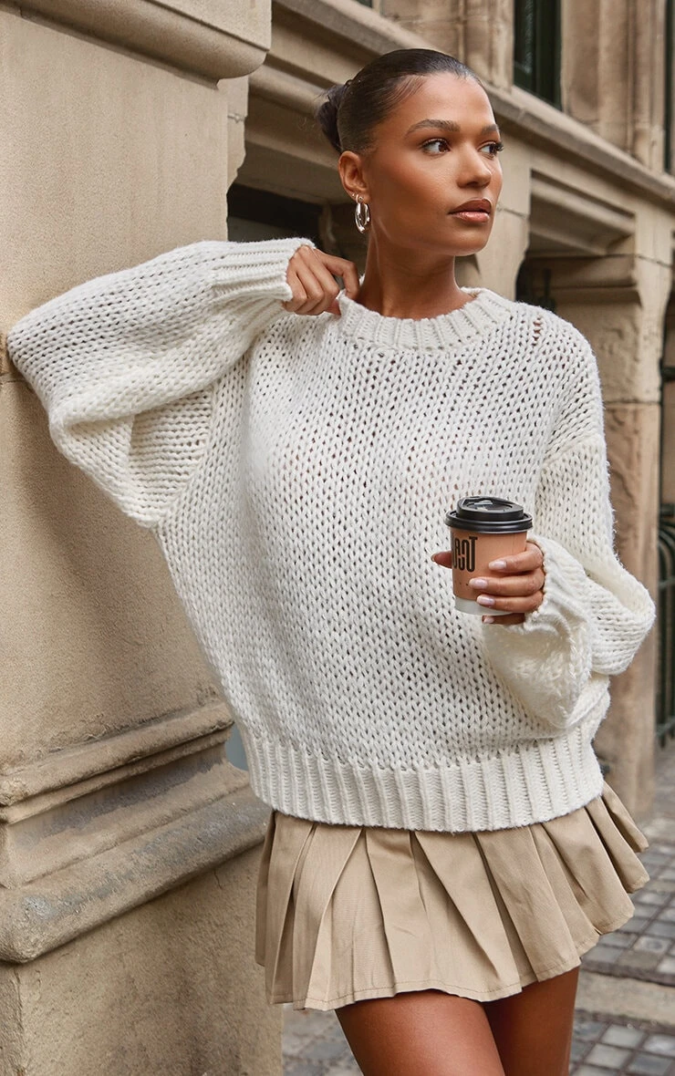 Add some layers to your outfit of the day with this cream super chunky oversized sweater. This unreal sweater is made from a cream material with a super chunky design that will have you nailing major trends this season and beyond. With an oversized fit, what more could you want doll? Team this dreamy sweater with a mini skirt and a pair of comfy boots for a fool proof finish.