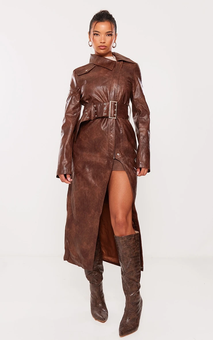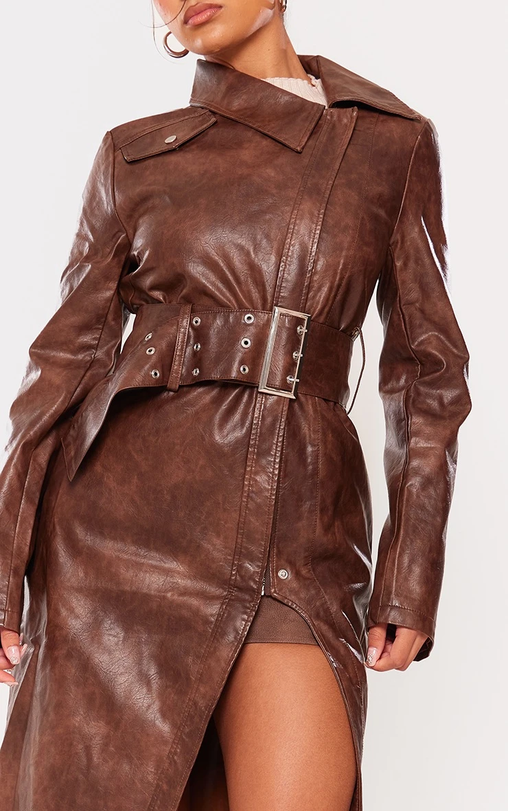 Be the first to review “Prettylittlething Dark Brown Distressed Faux Leather Belt Detail Tailored Coat Dark Brown” Cancel reply