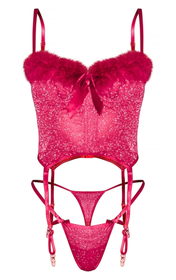 Be the first to review “Prettylittlething Dark Red Feather Trim Detail Suspender Corset Lingerie Set Dark Red” Cancel reply