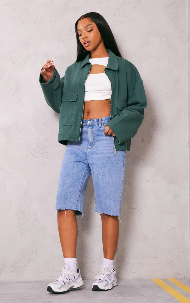 Be the first to review “Prettylittlething Forest Green Zip Up Denim Jacket Forest Green” Cancel reply